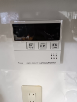 | 交換後の新しい給湯器の写真 | 交換後の台所リモコン | 新しい浴室リモコン |